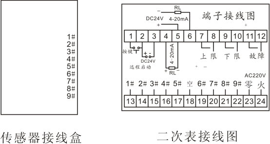 1、 仔細檢查傳感器和控制儀表的9根線是否連接正確。